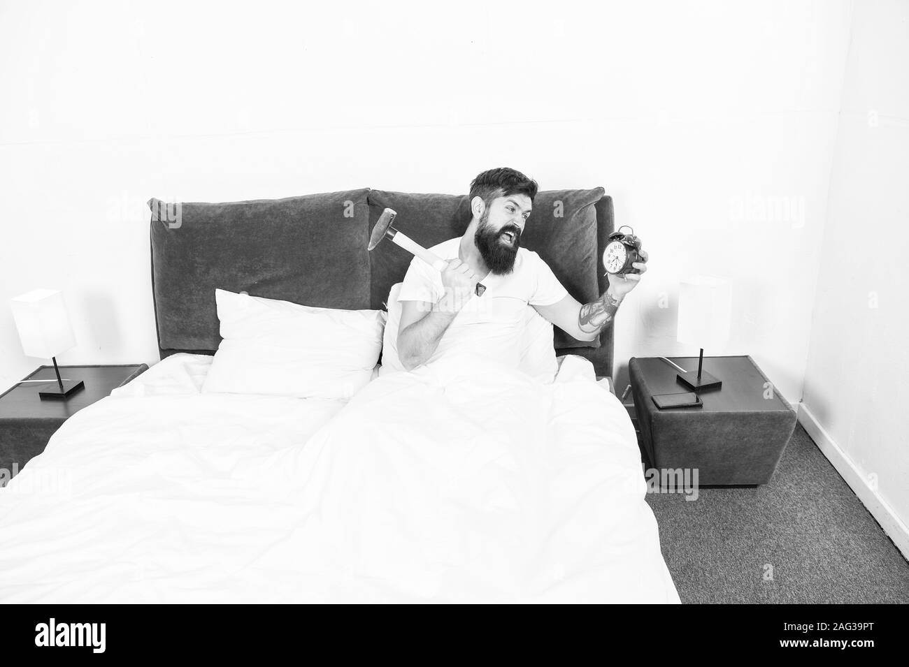 Hardest Moment Of Day It Is Totally Normal To Hate Your Alarm Sound Hateful Schedule Best Alarm Clocks For People Who Hate Mornings Man Bearded Hipster Hate Wake Up Early Destructive Energy